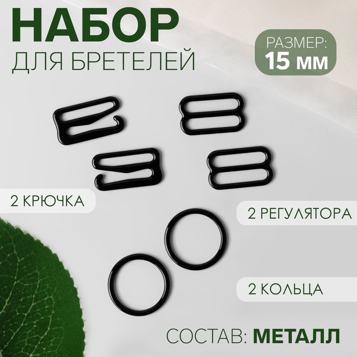 Metal straps: hooks, rings, regulators, 15 mm, black color