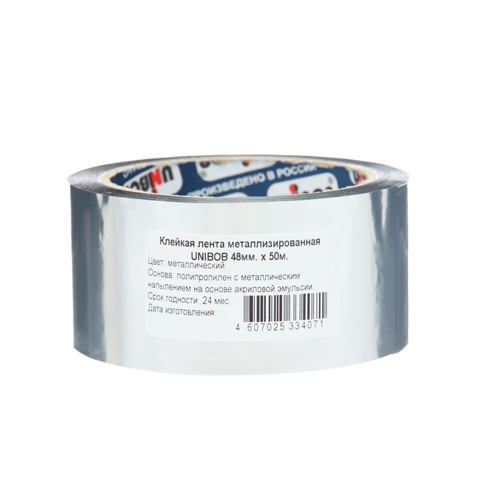 Metallized Unibob is an indispensable assistant during repair and construction work. Using simple and convenient in the use of adhesive tape, it is possible to seal the connecting seams with the installation of ventilation and air conditioning systems, restore decorative elements of aluminum, etc. The product reliably protects the connection from moisture, dust and dirt and has a high strength of wear and gap.
