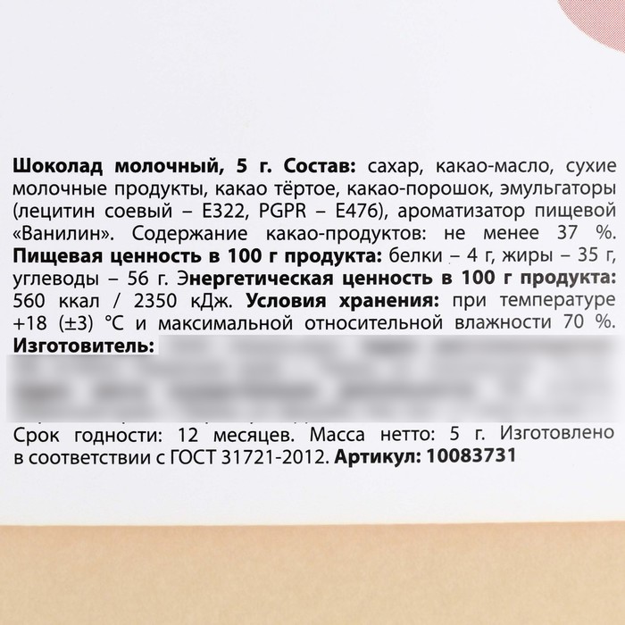 Milk chocolate "For dates" checklist, 5 g.