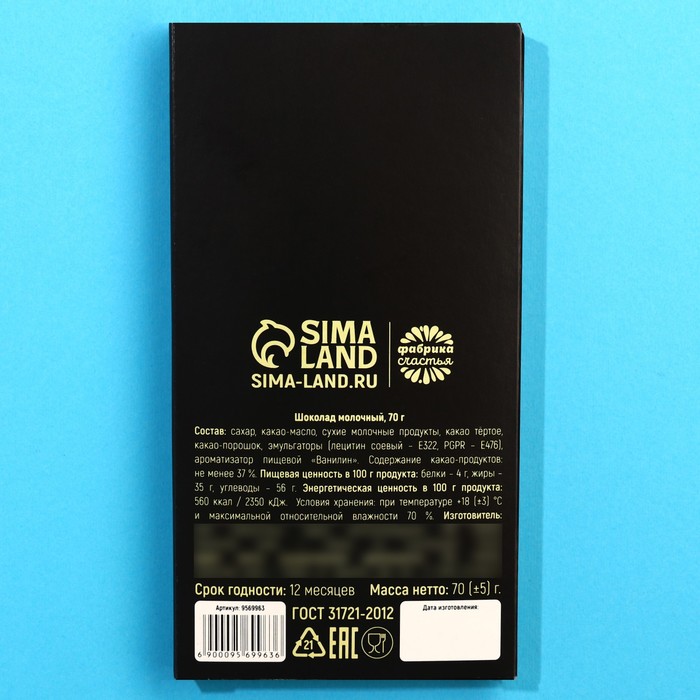 Composition: sugar, cocoa-butter, dry dairy products, cocoa-grated, cocoa powder, emulsifiers (soy soye E322, PGPR- E476), flavor, food "Vanilin".