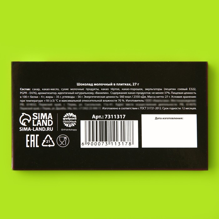 Milk chocolate "On Chile", 27 g.