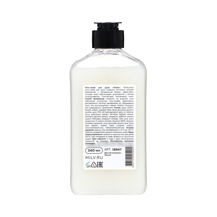 a foaming gel-scrub contains extracts of four algae and natural betaine, which effectively cleanses the skin, removing pollution and dead skin cells. It provides natural and soft exfoliation, giving your skin smoothness and softness. Immerse yourself in the atmosphere of the tropics right in your bathroom!