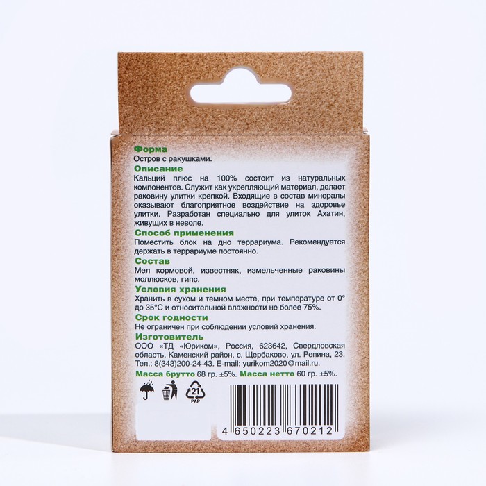 Calcium +mineral block, 100% of natural components. The product made in the form of an island with shells has a number of useful properties: