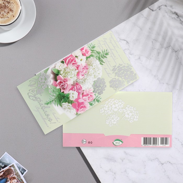 Money envelope "Congratulations!" embossing, hydrangeas, 16.5x8.5 cm