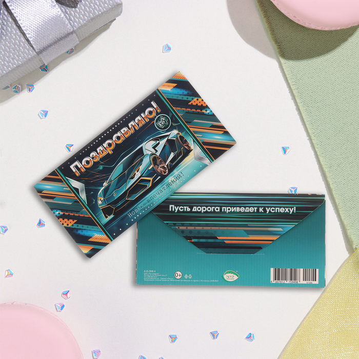 Money envelope "Congratulations!" Green car, 17x8 cm