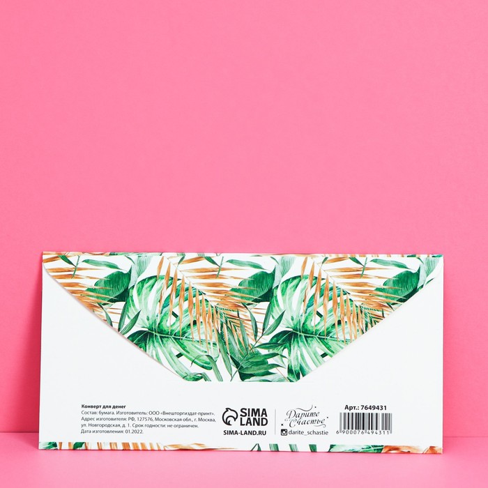 Money envelope "Happy wedding", flowers, 16.5 × 8 cm