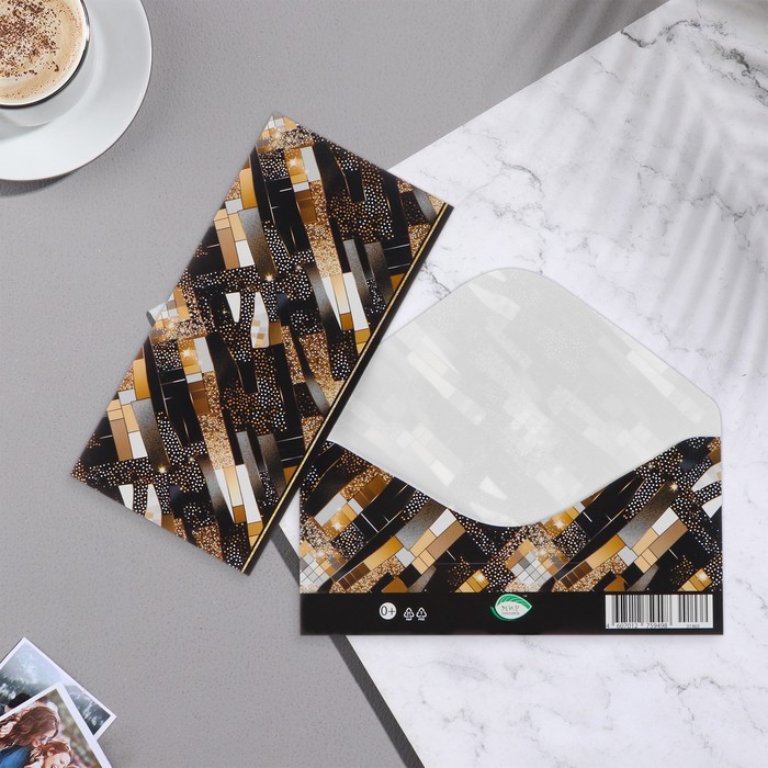 Money envelope "Universal" black-gold stripes, 17x8 cm