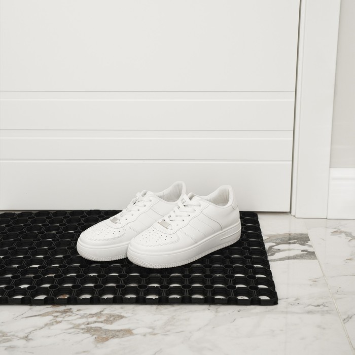 The rug of the groomed cellular is a multifunctional carpet. The surface of the rug is equipped with through cells, in which moisture and dirt are delayed. The cell mat is simple and convenient to use. However, he will perfectly complement any interior. The rug does not require a good care. For cleaning, it is enough to shake the product or rinse with water.