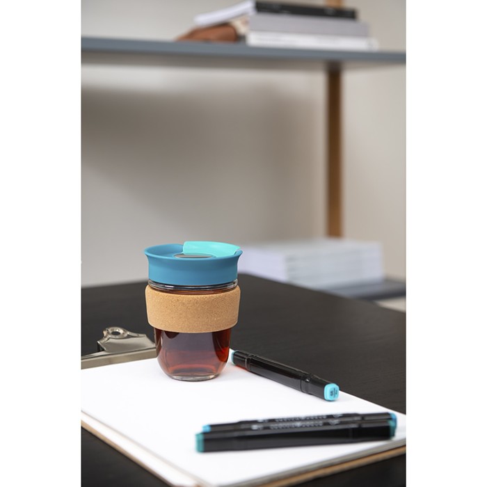 Materials: Borosilicate glass, cork, plastic, stainless steel.