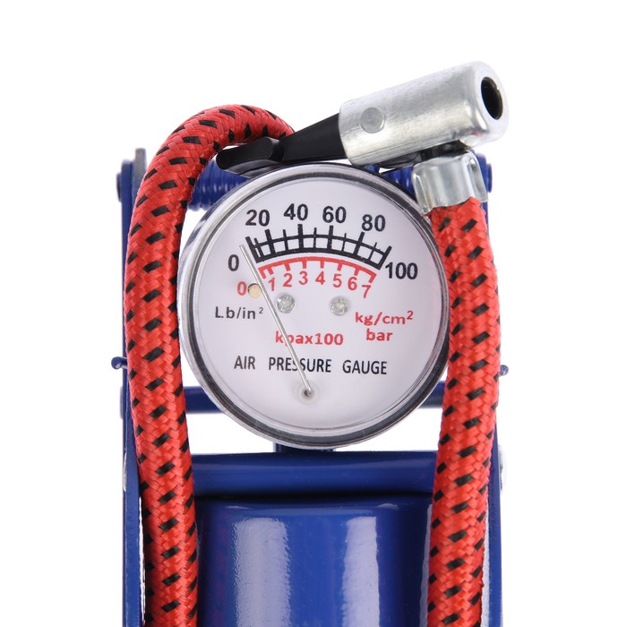 The foot pump is used to pump up tires of cars, motorcycles and bicycles, as well as inflatable children's toys, mattresses, sports balls and other similar products. The pump is equipped with a manometer for measuring air pressure. For the convenience of the user, the pump pedal has a special embossed anti -slip pad.