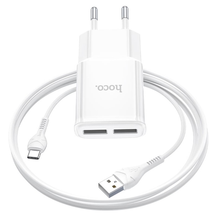 Network charger Hoco C88A, 2 USB, 2.4 A, Type -C - USB, 1 m, white cable