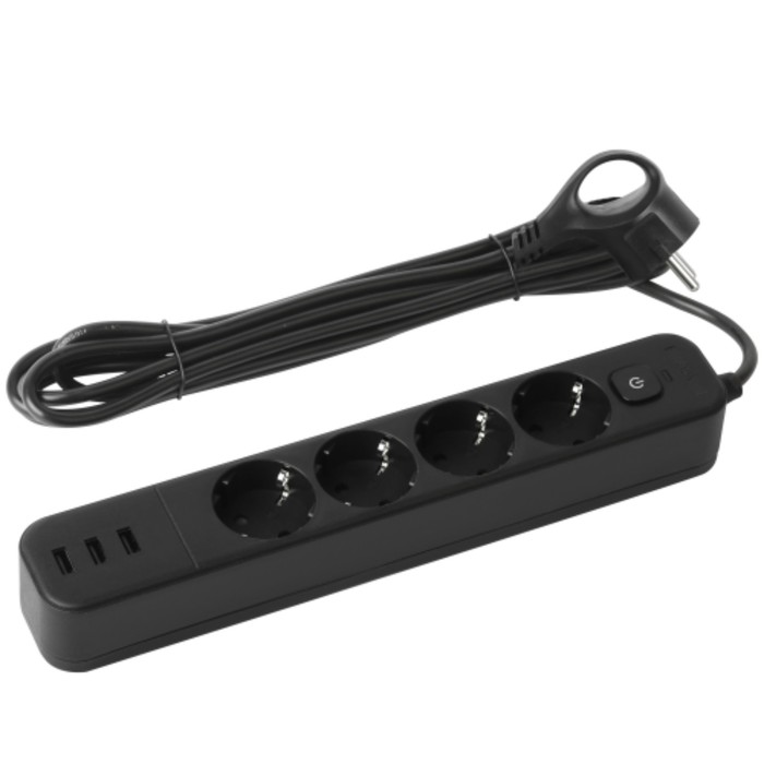 - The USF-4S-4M-3XUSBA-B network filter with ground, with a switch, 4 sockets, 3USB, 1.5 m wire, PVS 3x0.75mm2.