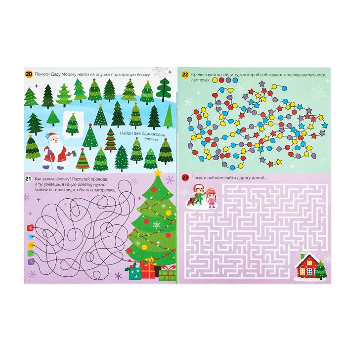 A set of New Year's books with tasks will entertain the baby in inclement weather and gives the feeling of the holiday. The child will have to carry out fun tasks, count the characters from the pictures, solve puzzles and pass tanned labyrinths.