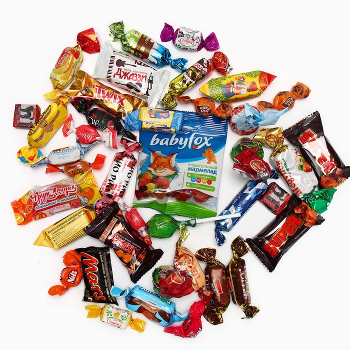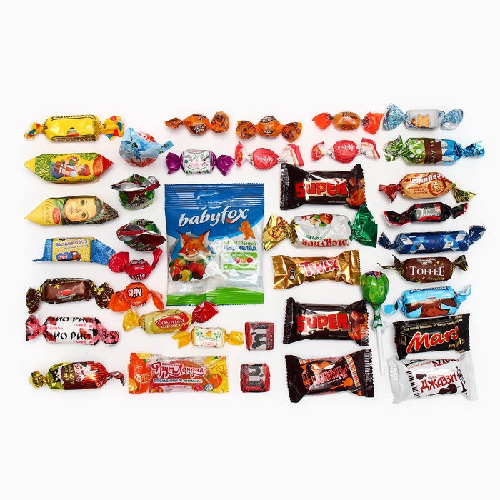 - Mexican-1; Batonchik Kharitos-1; Super-2; Nota-boom-2; Assort-2 Kremin; NILS chewing assort-2;