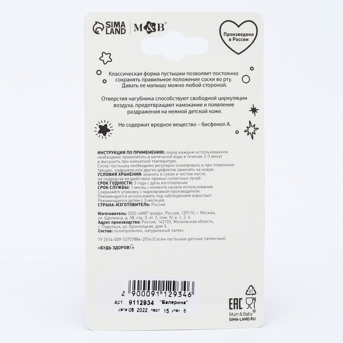 Nipple - classic dummy, latex, +3 months, "ballerina"