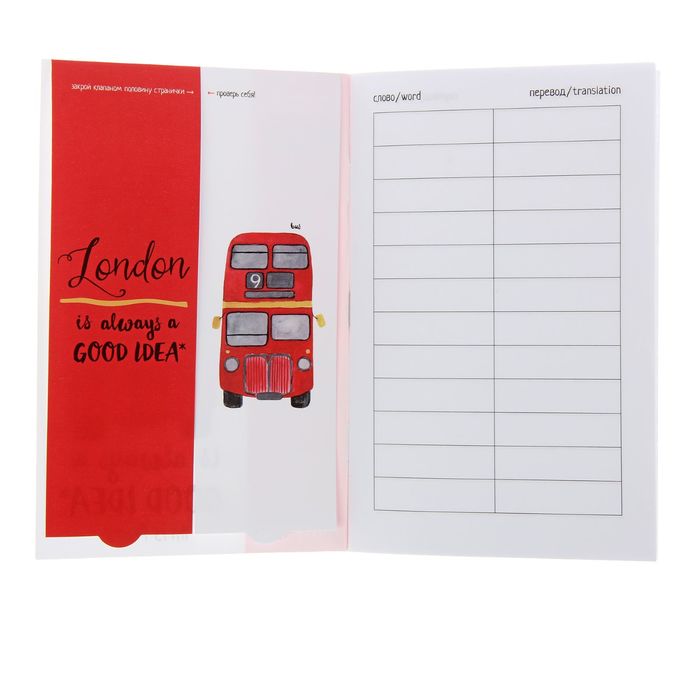 These are universal notebooks for recording words in any foreign language with a bright, attractive and dense cover. Convenient pocket format and pages with a wide Linovka. Each page of the notebook is divided into two columns: to recording a word and translation, and there is enough space in it to record more than 700 words. The orginal system of self -testing helps to learn vocabulary faster. Using the valves, it is convenient to remember the translation of the word, and vice versa - to recall the original by translation. Close half the page with the valve, move it up, open it one word and check yourself. The valves are attached to the covers on both sides of the notebook. The wip is suitable for students of secondary and high school, as well as students and adults.