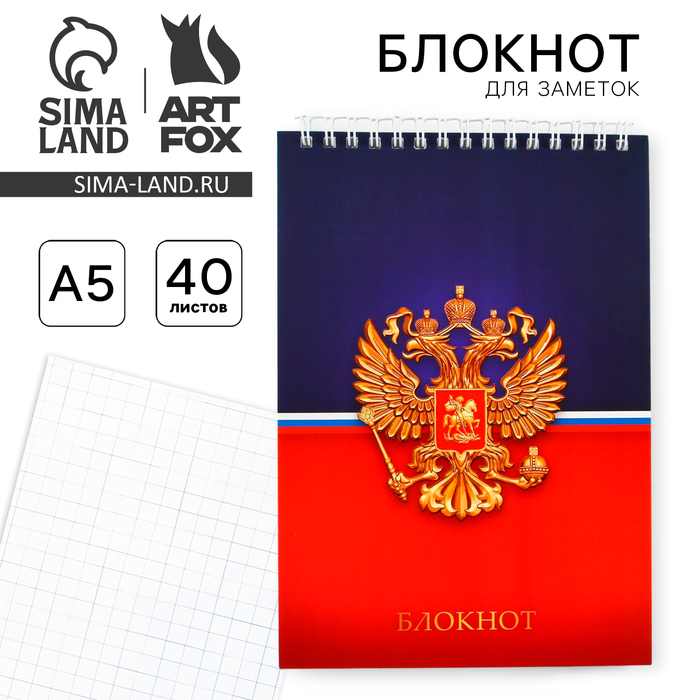 Notepad "Coat of arms", A5 format, 40 sheets, Cardboard cover soft