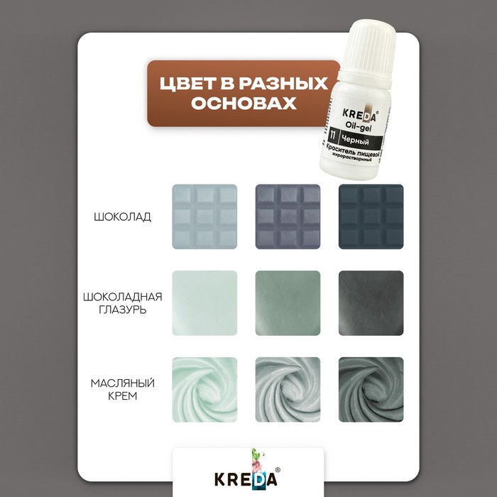 Fatial-soluble food dyes Kreda Bio Oil-Gel have a wide range of colors, have high coloring ability and are economical in use. A convenient dispenser allows you to clearly measure the right number of drops, and thanks to the gel base of the dye, the painted material does not change the consistency. Ideal for desserts, ice cream, fruit ice, creams and sauces