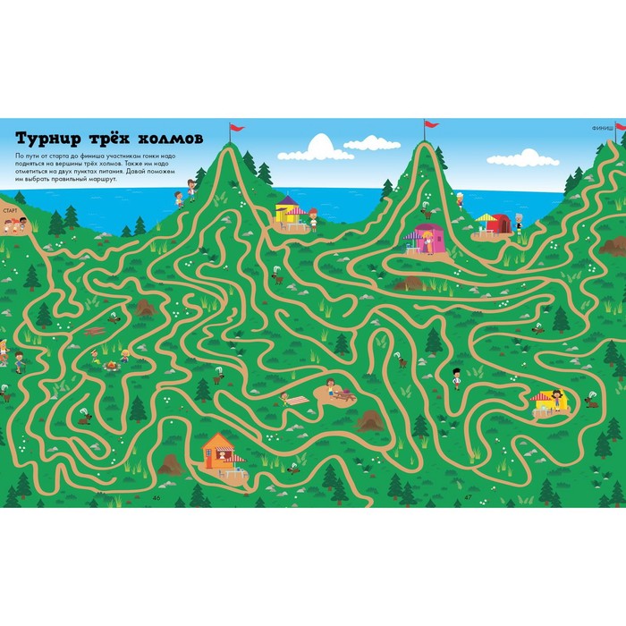 In this colorful book you will find 60 dizzying games with labyrinths. Visit the moon, in the scientist’s laboratory, take a walk between the sand castles, play with the puppies in the ball on the lawn, help the traveler get home and not get into the clutches of the yeti - and at the same time develop attention, quick wit and logical thinking. In the end, you will also find the keys for all labyrinths.