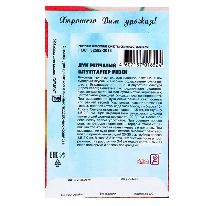 prefers fertile, light loam or loamy chernozems with a neutral reaction (does not tolerate acidic soils). When growing onions, the seeds are sown in autumn or early spring (as soon as the soil allows) on the ridges, across which grooves are made (after 19-15cm). Seeds are sown after 1-1.5 cm. To a depth of 1.5-2 cm. When growing onions, the sowing scheme should be 5*20-30cm. After sowing, the soil is slightly compacted. In autumn sowing, the rows are mulched with humus and peat. In the phase of 2-3 of these leaves, crops are thinned out at a distance of 3-4 cm between plants. If necessary, feed with complex fertilizer. Since July, top dressing and watering is stopped. They remove the sowing as soon as the leaves begin to turn yellow and lie down.
