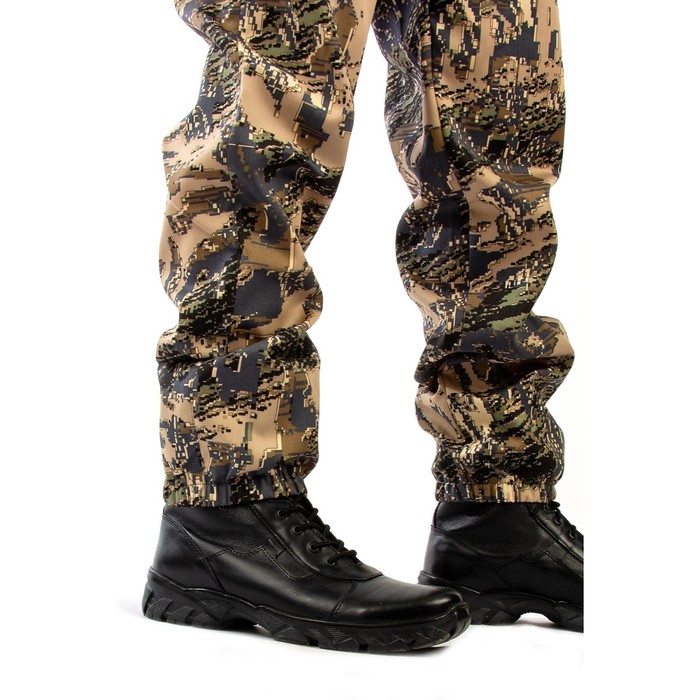straight cut pants. The bottom of the trousers and the belt are assembled on the elastic band, and there are additions to the belt. Two oblique pockets at the belt.