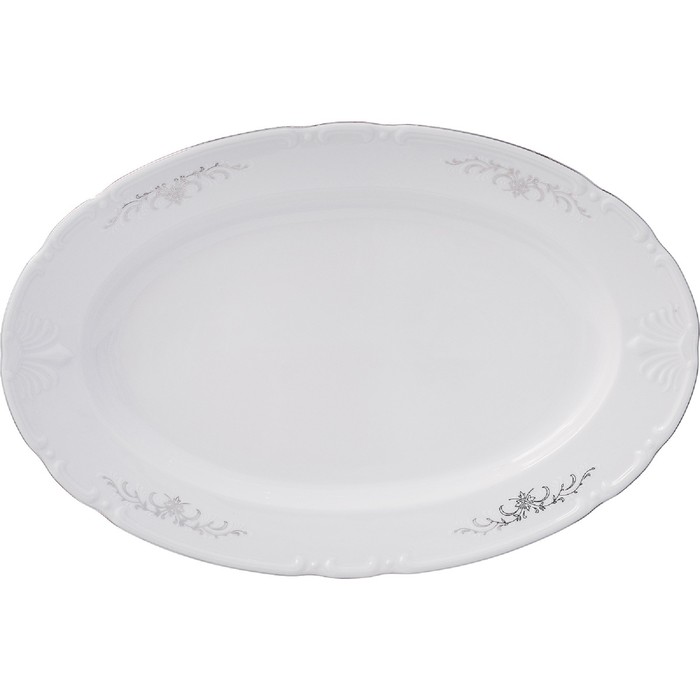 Oval Constance dish, decor "Gray ornament, platinum layout", 36 cm