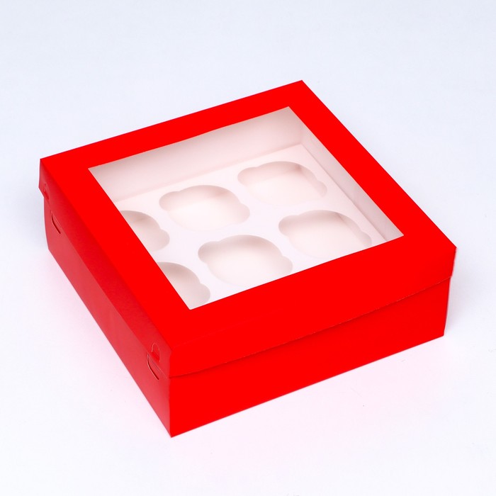 Packaging for 9 cupcakes with a window, red, 25 x 25 x 10 cm