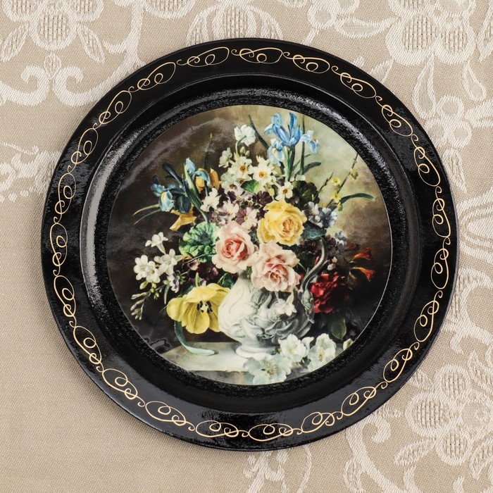 Panel-melting "Flowers", D = 18 cm, lacquer miniature, mix