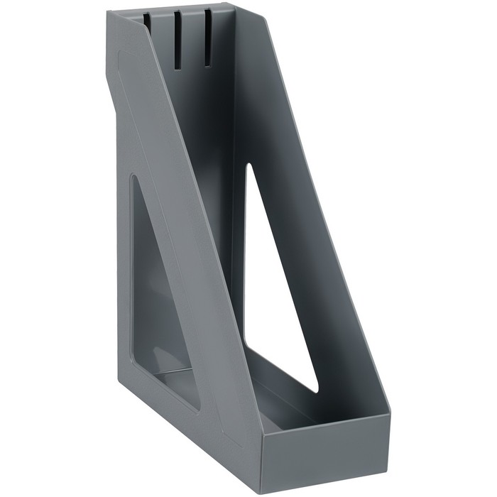 The vertical paper tray is designed to store A4 format documents. It has a combined surface - glossy and matte. Made of high -quality polystyrene. The dimensions of the product are 285x265x100 mm. Suitable for storing heavy catalogs and folders. Comains up to 800 sheets. On the end of the tray there is a capture for convenient stretching from the shelf. The capture also serves the marking window, which provides for the possibility of changing inserts. Individual packaging is a package. The color of the tray is gray