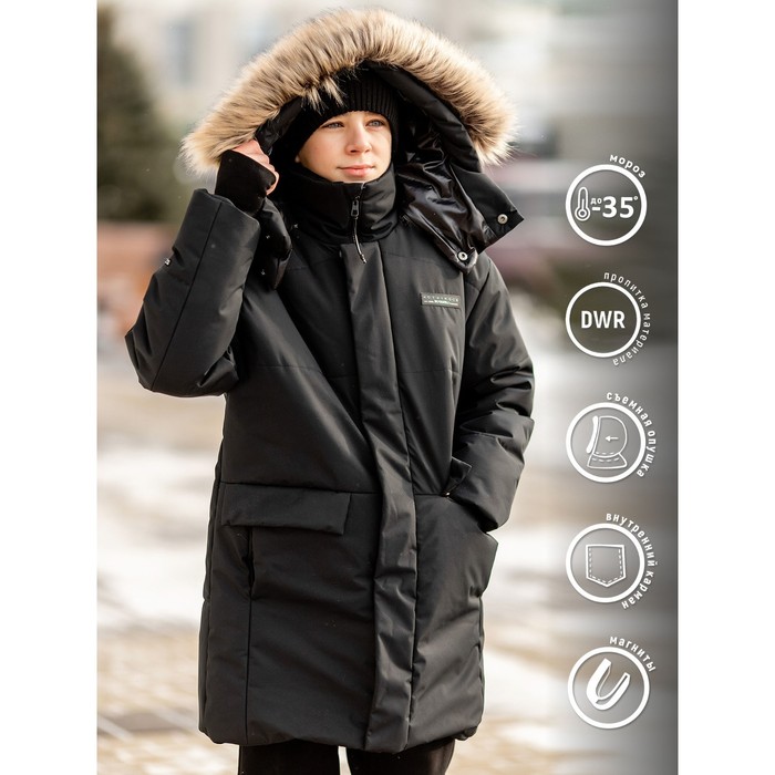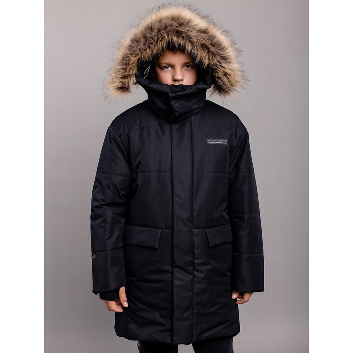 Park for the boy "Lorenso" is made of a membrane. It is fastened with a zipper with a windproof bar. Microflis lining. Direct silhouette. Inexpressible hood with artificial fur on the buttons.