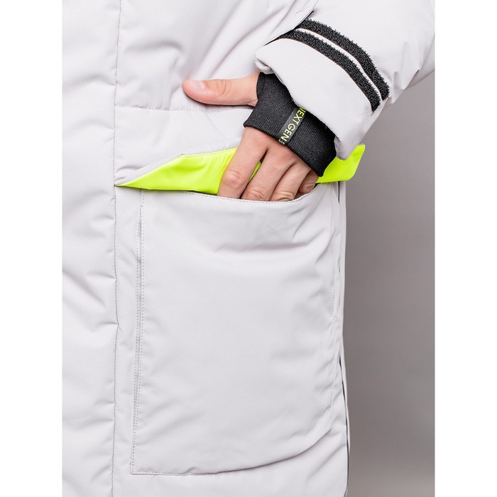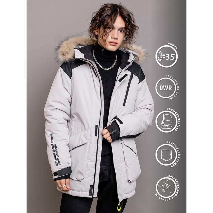 Park for the boy “RED” with a hood is made of membrane fabric. On the chest pockets with a zipper, also pockets on the sides. On the sleeve is a stylish inscription. Elastic cuffs are adjustable thanks to Velcro. The central zipper and the bar on the buttons.