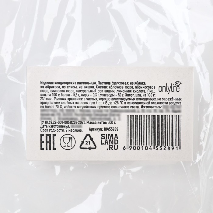 Pastille "Cherry, apple, apricot, plum", 500 g.