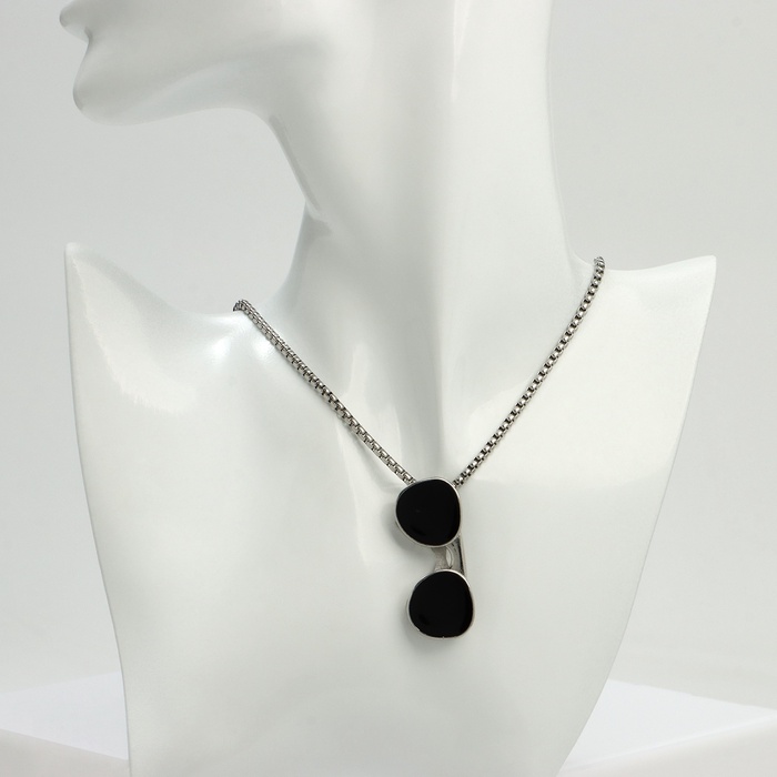 Pendant "glasses" sunscreen, black color in silver, 70 cm