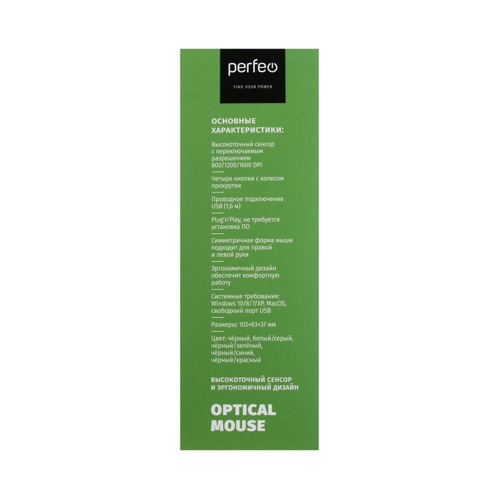 Perfeo Profil mouse, wired, optical, 1600 dpi, USB, green