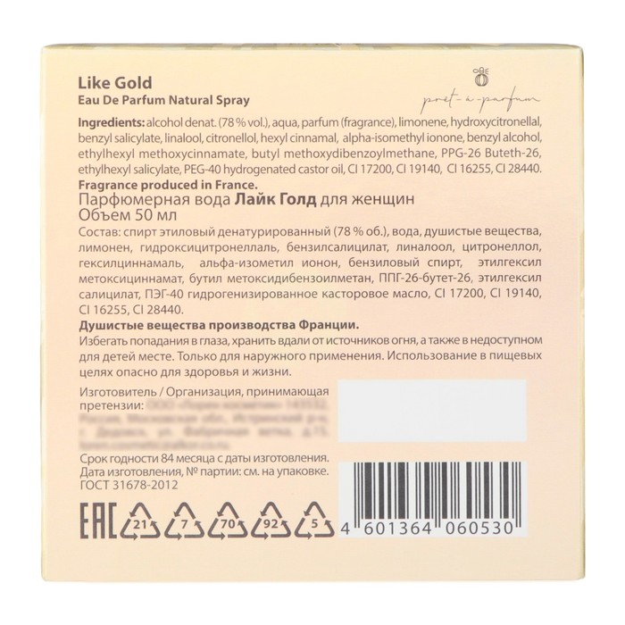 Perfumery Women Like "Gold", 50 ml