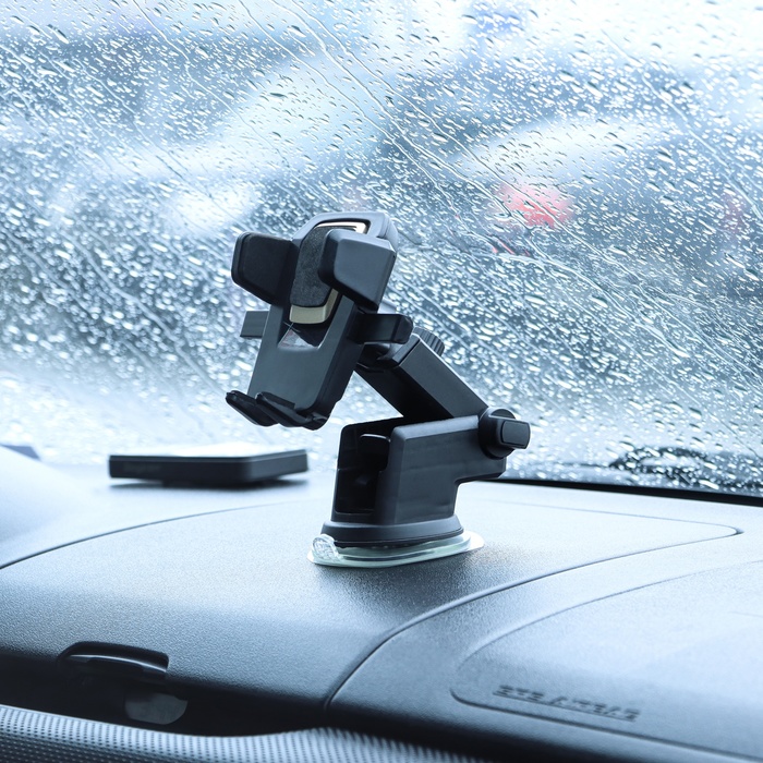 - The phone holder on the suction cup in a car, sliding 6.5-10 cm, black.