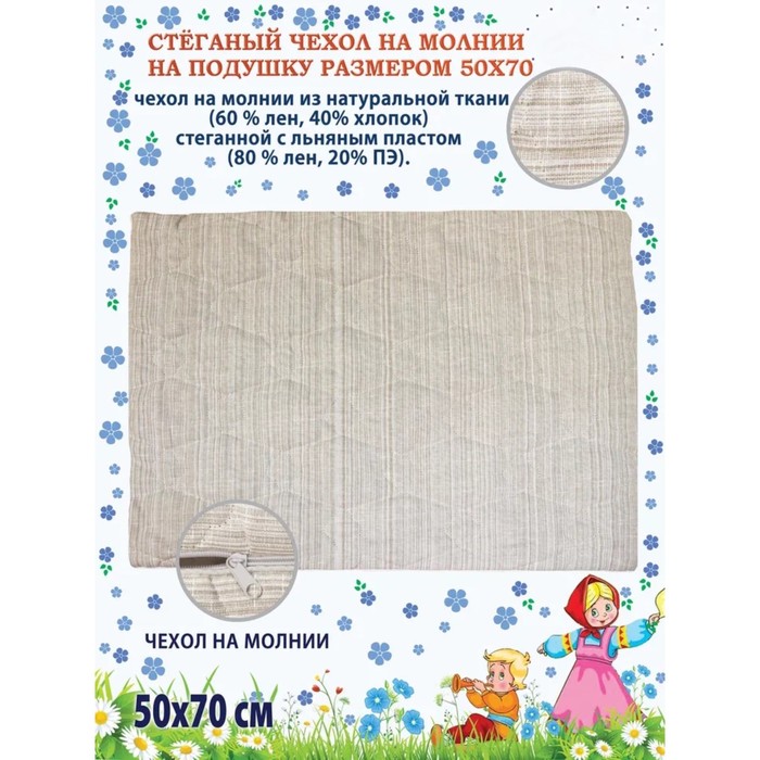 Pillowcase, on a zipper, size 50x70 cm