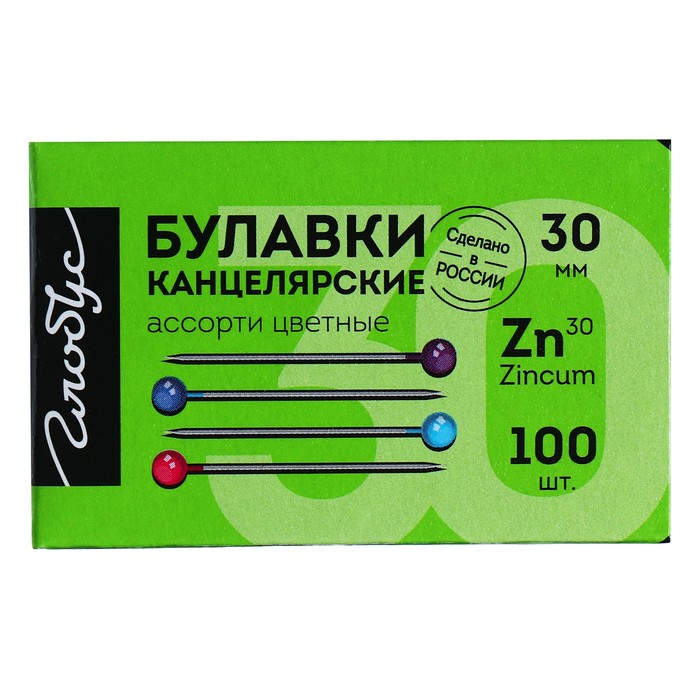 Pins with a color head Globus, 100 pcs., 30 mm
