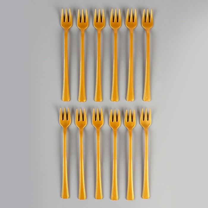 Plastic forks, set 12 pieces, color gold