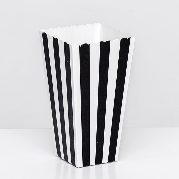 Popcorn packaging, black stripes, 8.5 x 8.5 x 16.5 cm