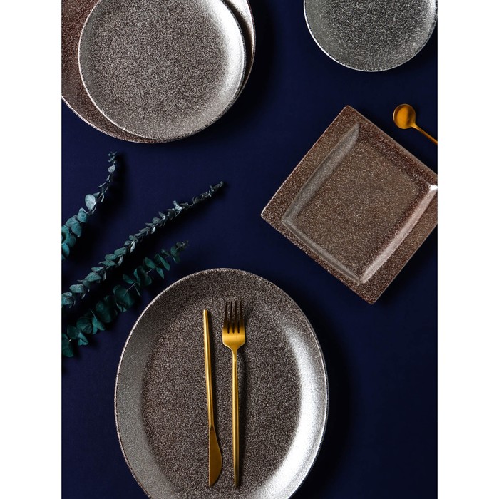 If you want to diversify the daily table setting, then take a closer look at the Porvasal Lunar series of dishes. Products in a chocolate shade with the effect of granite emphasize your personality and will definitely impress guests.