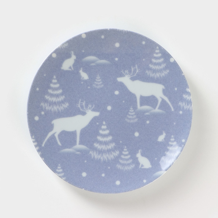 Porcelain plate "Winter Forest", d = 20 cm, blue color