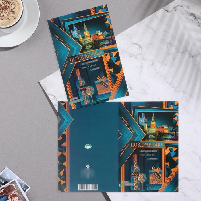 Postcard "Congratulations!" Congrev, embossing, city, 38x29 cm