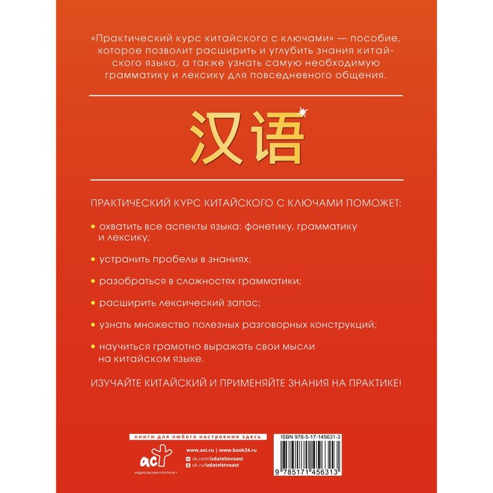 This edition presents a practical course of Chinese, which covers the vocabulary, grammar and phonetics of the language. analyzing sounds, reading rules, and also pay attention to the correct writing of hieroglyphs. The main course consists of 15 volumetric lessons, each of which is dedicated to a specific topic. Each lesson gives the necessary volume of vocabulary and grammar, as well as practical exercises for working and consolidating the material with keys at the end of the manual. The author’s technique is aimed at the end of each lesson, students can speak on a given topic, as well as read and write texts of the average level of complexity. The study of grammar begins with the simplest topics and is complicated from the lesson to the lesson. All rules are reflected both in texts and in exercises. Bonus for the book is given texts for reading, as well as tasks for consolidating the vocabulary of the pasta.