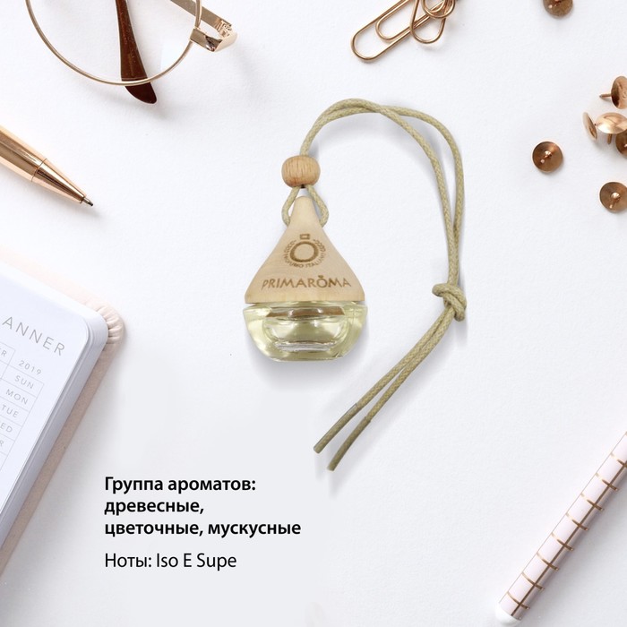 The fragrance of the suspended in the form of a bottle with a wooden lid with natural perfumed oils will fill the car interior with an unsurpassed aroma.