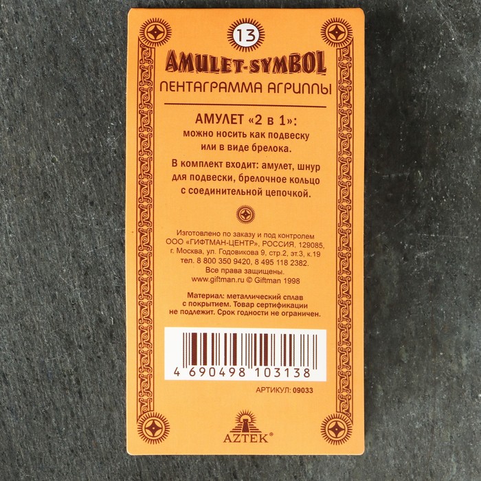 Protective amulet "AGRIPPA Pentagram" No. 13, 27x29mm, metallic