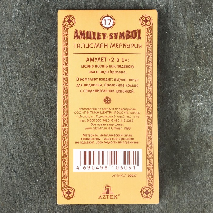 Protective amulet "Talisman Mercury" No. 17, 25x25mm, metallic