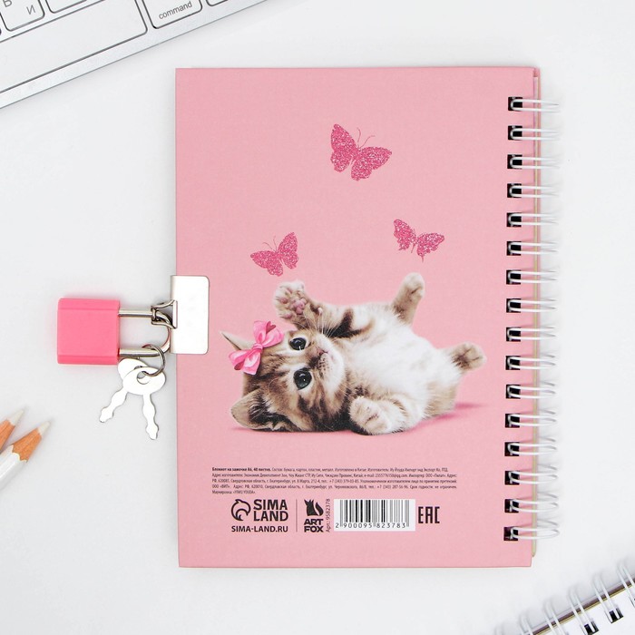 Questionnaire on a lock, in a solid cover A6, 40 sheets "Kotik"