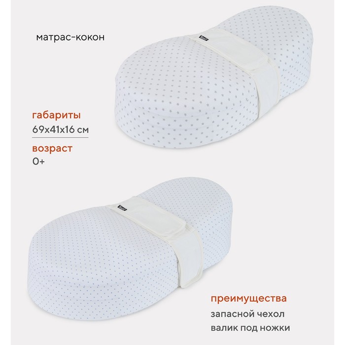 • the materials from which our cocoon was created is absolutely hypoallergenic and safe for newborns. The cell is made of viscous elastic polyurethane foam with memory effect (Memory Foam). The sheet is made of 100% of the interlock cotton (knitted canvas). The removable cover is made of a waterproof knitted canvas.