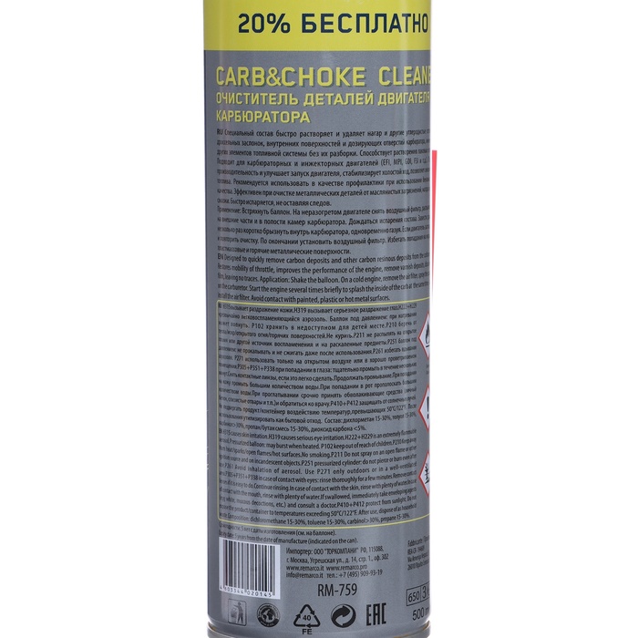 Rebber carburetor cleaner is an effective means for removing soot, lubricant and carbon deposits from a carburetor, throttle, and other components of the fuel system. It is suitable for carburetor and injector engines.